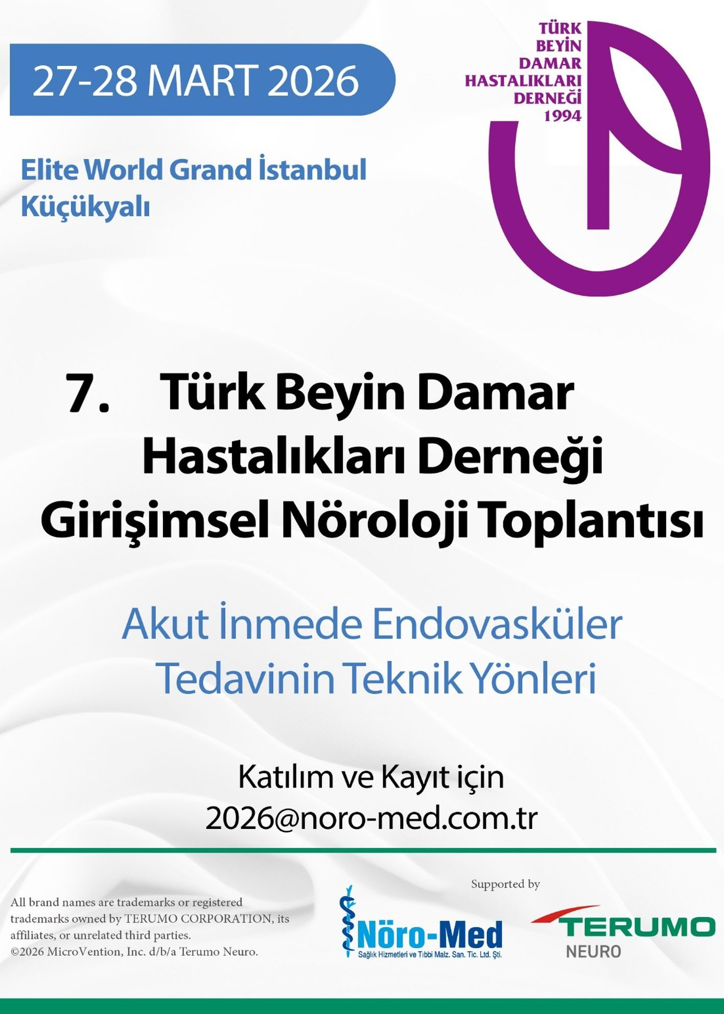 7. Türk Beyin Damar Hastalıkları Derneği Girişimsel Nöroloji Toplantısı 'Akut İnmenin Endovasküler Tedavisinin Teknik Yönleri' 27-28 Mart 2026 Elite World Grand Küçükyalı, İstanbul, Türkiye
